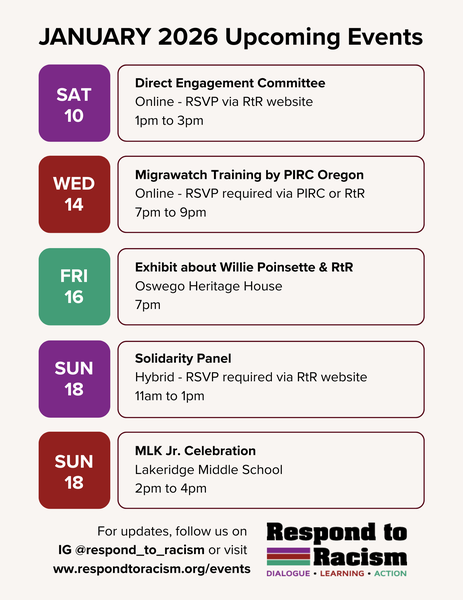 Blvd., Portland, OR 97219) or online (link provided upon registration). Be sure to RSVP here: https://respondtoracism.org/events/solidarity-panel/