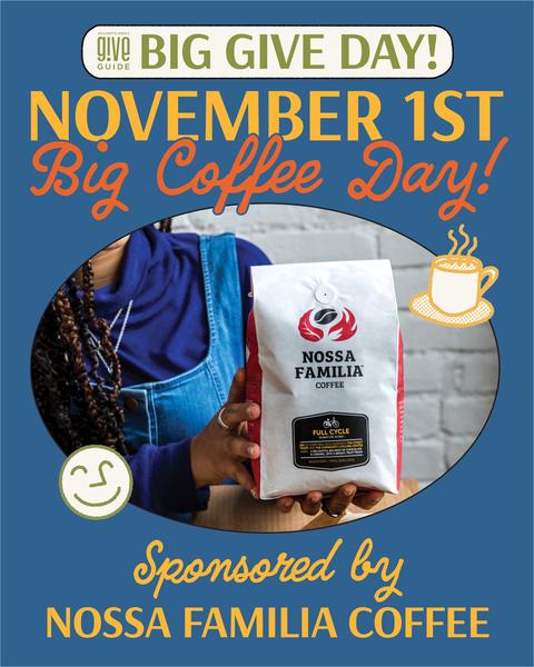 Give Days this giving season. We will be sending reminders, so expect 1-2 more emails per week than usual. The first BGD is happening on Nov 1. Donate $10 or more to any org for three chances to win a six-month coffee subscription from Nossa Familia. Donors 35 and under have a fourth chance to win! If you're going to donate, do so on the Big Give